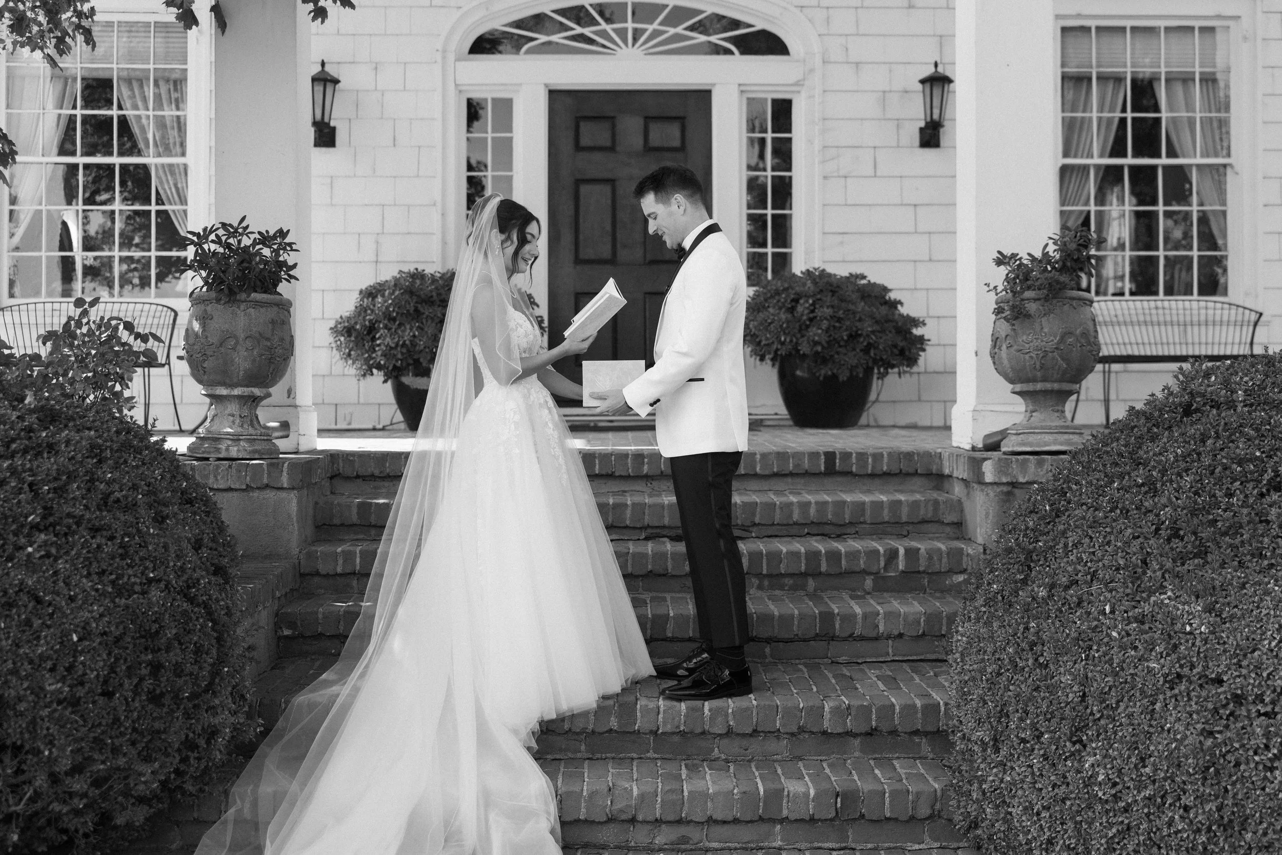 The ceremony unfolded beneath open skies, with guests seated among the vines as Garrison and Darby exchanged vows. As the evening transitioned into cocktail hour and dinner, guests enjoyed the garden party aesthetic. Guests gathered on the grounds, enjoying great food, flowing drinks, and conversation that carried long after sunset. The reception struck the perfect balance between polished and relaxed, inviting everyone to truly settle in and celebrate.